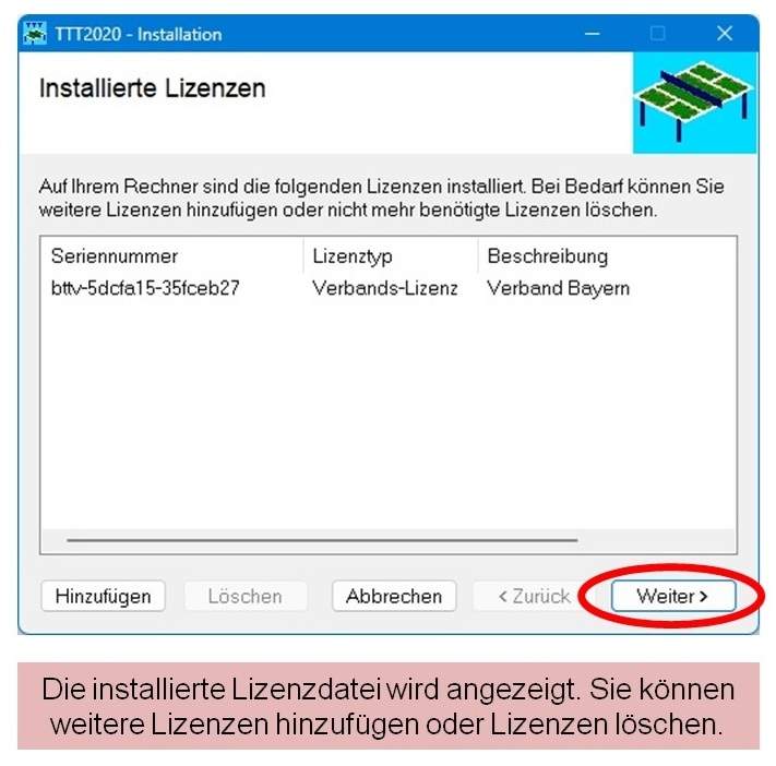 Die Beschreibung für die nachträgliche Installation von Lizenzen finden Sie hier.