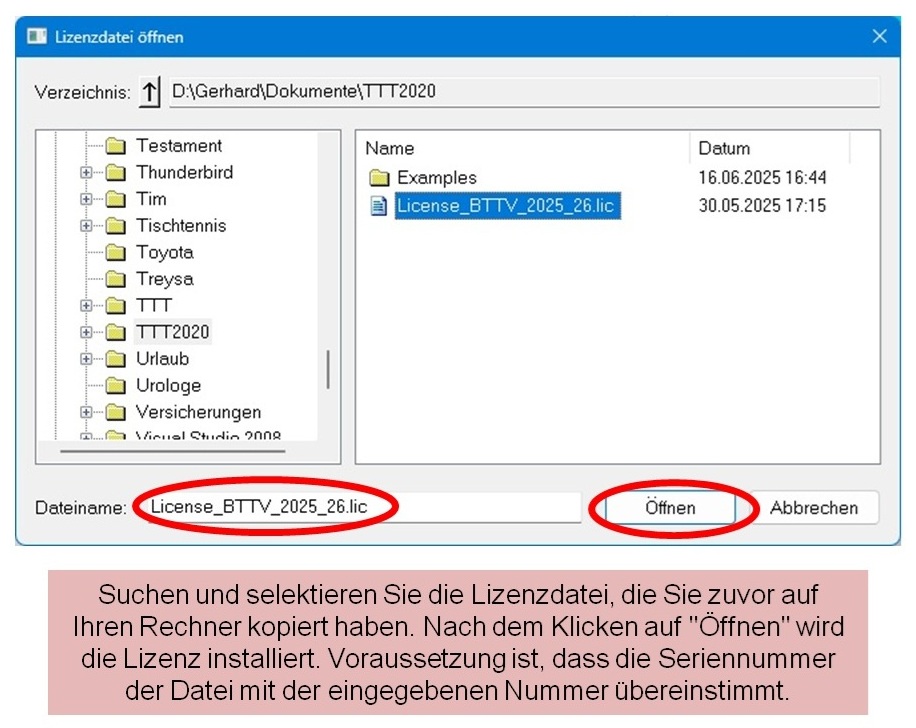 Wenn Sie eine Lizenz besitzen, kopieren Sie die Lizenzdatei (vom Typ *.lic) auf Ihren Rechner, z.B. in das Verzeichnis Dokumente.